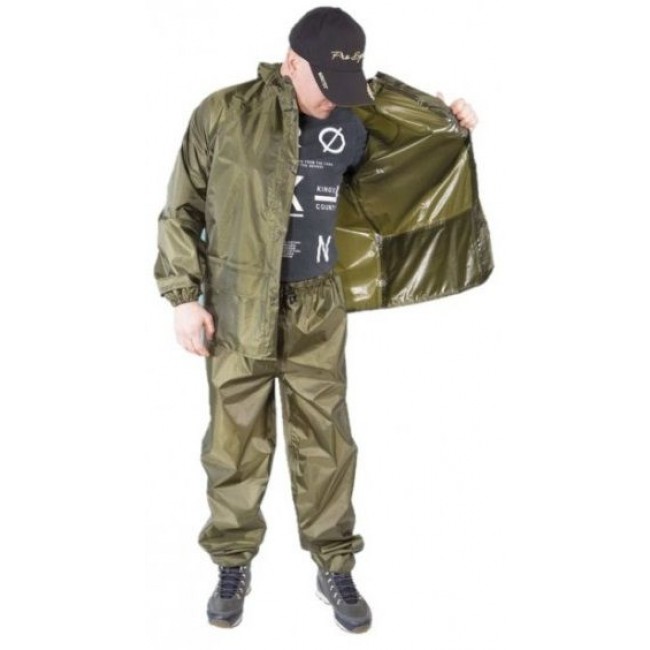Костюм изготовлен из 100% влагозащитной ткани, армированной, укрепленной нитями-кордами. Предназначен для комфортного занятия любимыми видами отдыха – рыбалкой, охотой, туризмом. Костюм спасает от дождя и ветра. Швы прошиты и проклеены изнутри пленкой ПЭ, что обеспечивает герметичность изделия. Куртка (арт. 729 КМС т) с карманами, закрытыми клапаном, швы проклеены, имеются воздухоотводы под мышками. Брюки – джогеры (арт. 719 БМС т) цельнокроенные, на резинке. Материал устойчив к внешним воздействиям. Выполнен костюм в классическом, светло-оливковом цвете. Застежка на кнопках.