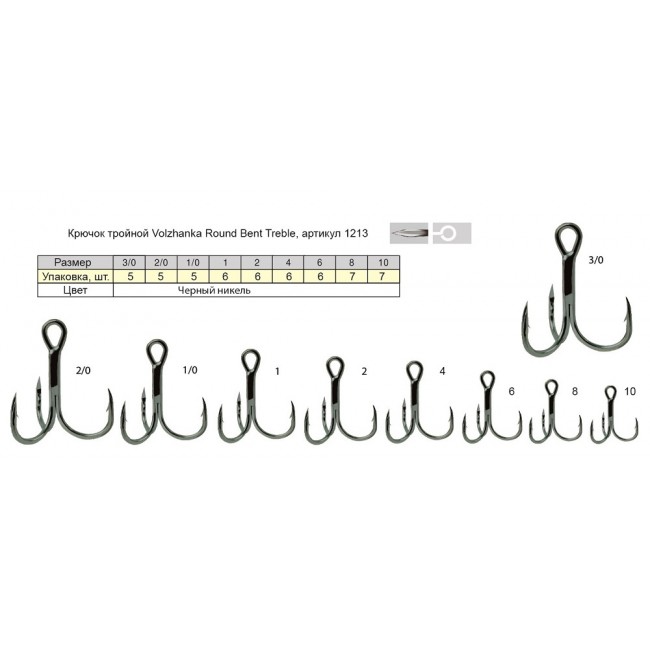 Крючок тройной Volzhanka Round Bent Treble № 6 (6шт) 1213-6