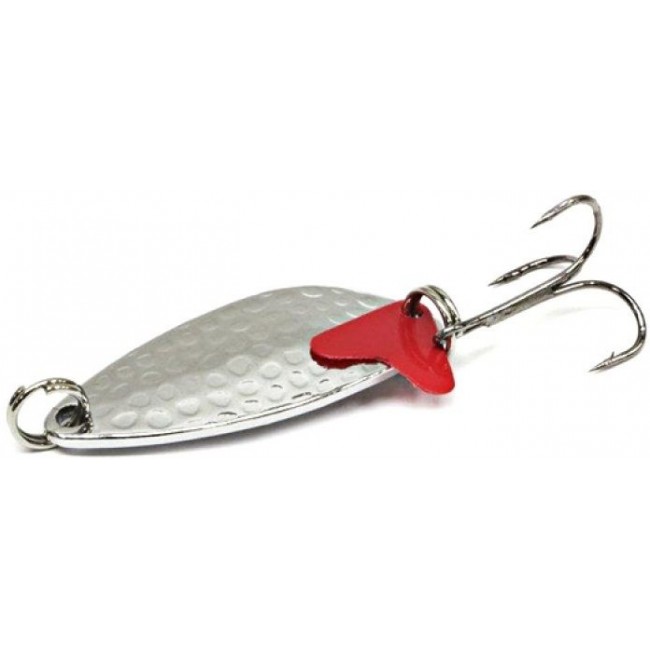 Фигурная штамповка на поверхности пластины - особенность приманок Strong Pugna. Таким образом эксперты Namazu добились микровибраций при проводке, которые рыбы хорошо улавливают издали. Блесна имеет классическую овальную форму и небольшой, почти незаметный изгиб.Это улучшает кастинговые показатели, позволяет облавливать приямки и ямы. Основной целевой рыбой можно считать щуку или окуня, некоторые виды лососевых. Неровная поверхность блестящей пластины на свету красиво бликует. Дополнительно поддразнивает потенциальную добычу алый лепесток, расположенный рядом с тройником.