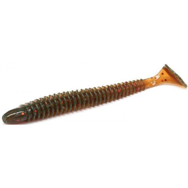 Мягкая приманка Fetish от производителя Select имеет вытянутый ребристый корпус и небольшую пятку на конце, как и у большинства виброхвостов. За счет такого строения тела приманка активно колеблется воде, привлекая проголодавшихся хищников. Изготовлена Fetish из мягкого и эластичного силикона с добавлением ароматизаторов, которые также привлекают внимание хищников, ищущих легкую добычу. Длина модификации Fetish 4 составляет 10 см., а вес - 4,5 гр. Силиконка достаточно крупного размера, поэтому может стать эффективным вариантом для ловли судака или щуки. Торговая марка Select предлагает широкий выбор расцветок данной приманки. Найдутся как темные варианты, так и яркие кислотники с блестками.