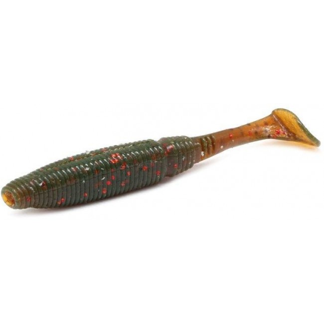 Select Shad One – это мягкая приманка, выполненная в виде виброхвоста. Она наделена объемным ребристым телом, плавно переходящим в хвост с пяткой на конце. Оригинальности данному виброхвосту придает некое утоньшение на теле приманки непосредственно перед хвостом, за счет чего его игра становится более свободной и размашистой. Благодаря подобной конструкции во время проводки приманка создает множественные колебания и вибрации в воде, привлекающие хищника. Модель выполнена из мягкой съедобной резины, в состав которой входят аттрактанты и разнообразные вкусовые добавки. Они являются мощнейшими стимуляторами клева, создавая на большой площади вокруг приманки вкусоароматическое облако, привлекающее хищников и провоцирующее на атаку. Модель Select Shad One отлично проявила себя при ловле щуки и судака. Наиболее удачным вариантом монтажа для данного виброхвоста станет шарнирный или классическая джиг-головка.