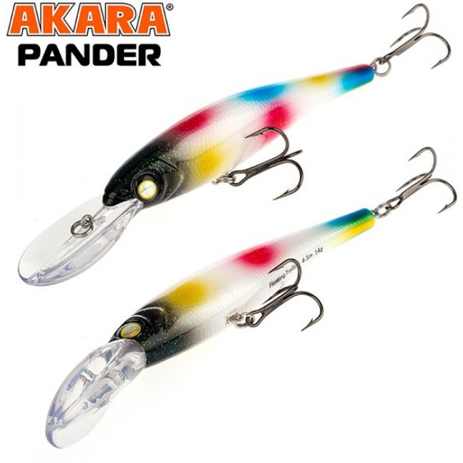 Pander 105F – классический воблер рассчитанный на ловлю, как троллингом, так и в заброс, позволяет ловить любую хищную рыбу на глубине до 5 метров. Обладает, хаотичной, рыскающей игрой имитируя раненую рыбку. Расцветки позволяют подобрать модель под любые условия ловли.