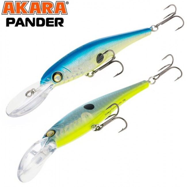 Pander 105F – классический воблер рассчитанный на ловлю, как троллингом, так и в заброс, позволяет ловить любую хищную рыбу на глубине до 5 метров. Обладает, хаотичной, рыскающей игрой имитируя раненую рыбку. Расцветки позволяют подобрать модель под любые условия ловли.