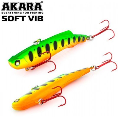 Воблер Akara Soft Vib – безлопастный воблер класса раттлин (rattlin). Отличительная особенность этой приманки – силиконовое тело. Именно благодаря силикону, который похож по жесткости на тело рыбки, при поклевке, хищник не сразу выплевывает приманку, что позволяет сделать своевременную подсечку. Так же, силикон дает возможность пропитывать его разного рода аттрактантами, что позволяет соблазнить на поклевку даже самую пассивную рыбу. В первую очередь Akara Soft Vib предназначен для отвесной ловли судака в зимнее время. Однако с большим успехом применяется для ловли щуки и окуня, как со льда, так и по открытой воде в теплое время года. Тип плавучести – быстро тонущий (top sinking).