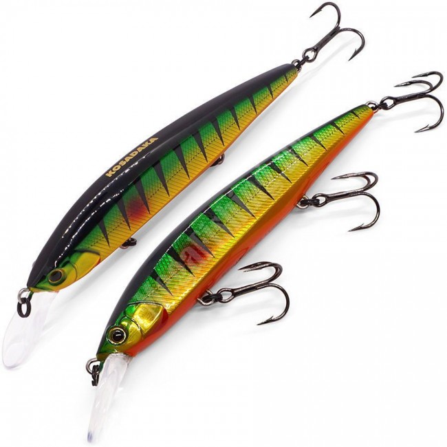 Выполнена новинка сразу в двух модификациях. Первая – поменьше. Ее длина 110 мм и вес 17 гр. Она лучше подойдет для небольших водоемов с преимущественно некрупной щукой. Воблер менее упорист и заглубляется на глубину до 1,2 м. При его применении меньше нагрузка на снасть.