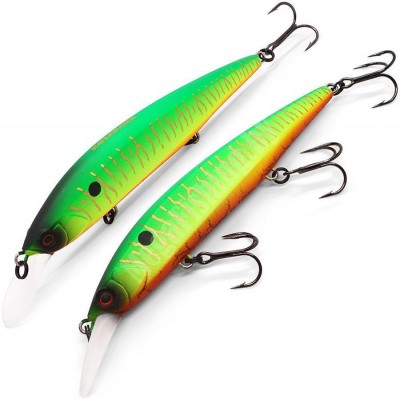 Выполнена новинка сразу в двух модификациях. Первая – поменьше. Ее длина 110 мм и вес 17 гр. Она лучше подойдет для небольших водоемов с преимущественно некрупной щукой. Воблер менее упорист и заглубляется на глубину до 1,2 м. При его применении меньше нагрузка на снасть.