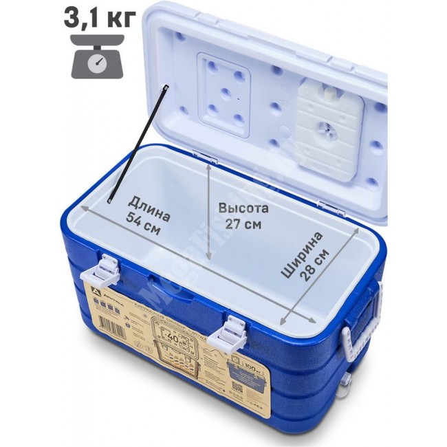 Вес термоконтейнера — 3.2 кг, объем холодильного отсека — 40 л.